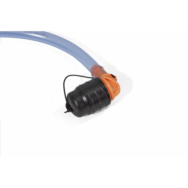 Jacketed drinking tube with 'bite' valve and adapter. Transforms your Ortlieb water bag in to a genuine drink system. Simply fit the tube and stuff the water bag in your rucksack or day sack. Drinking on the move is immediately possible. Ideal for trekking, kayaking, cycling or even in the car. Tube length approx. 85 cm.